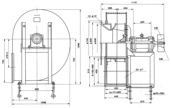 4-68№6.3C離心通風機外形及安裝尺寸