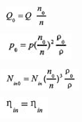 風機性能一般均指在標準狀況下的風機性能,無論技術文件或訂貨要求的性能,均按標準狀況為準。如果風機所用的環境并非標準狀況下,則須根據下述關系式將性能參數換算成為標準狀況下的性能參數,然后在性能表中進行選擇。