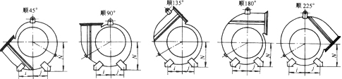 引風機制成單吸入。機號有№4、5、6.3、8、10、12.5六種。風機可制成右旋轉和左旋轉兩種型式,從電動機一端正視,葉輪順時針旋轉,稱為右旋轉風機,以“右”表示;葉輪逆時針旋轉,稱為左旋轉風機,以“左”表示。