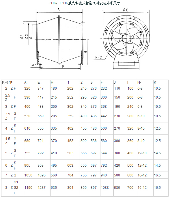 我國目前現有風機的品種和規格還不能適應建筑業飛速發展的需要。存在的主要問題是各種機型之間的比轉數間距較大,往往使工程設計人員難以選擇到理想的機型。這就給一些工程帶來了電能浪費和噪聲污染等一系列不良后果。針對這種情況,開發了SJG系列玻璃鋼斜流式管道風機產品。這種類型風機的比轉數值介于離心式風機和軸流式風機之間,兼有離心式風機壓力系數較高和軸流式風機流量系數較高的優點,同時具有高效區寬廣的優點。 SJG系列斜流式管道風機除具有上述獨特的空氣動力特性以外,其結構形式也使得工程設計和安裝施工工作大大的簡化了。它的進風方向和出風方向位于一條軸線上,且進出口尺寸相同,并有與相同直徑的風管相聯接的法蘭,安裝十分方便,它不必像離心風機那樣,安裝時要使風管有一個90度的轉折、因而占地少,不影響管道布置和管道走向,適宜于為直管道加壓和送、排風。對于空間狹小的機房,尤其顯示出它的機構緊湊的優越性。