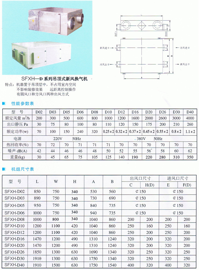 由于氣流通道的改進,運行時噪音水平只有 38-64dB(A)SFXH-D 系列產品結構設計緊湊合理,適宜走道吊頂或天花板內安裝,也可裝置安裝。熱回收器采用先j科技,用特殊材質化學處理加工而成,具有阻燃性,對溫度、濕度、冷熱能量回收起到更佳效果,使用效果超過同類進口產品。